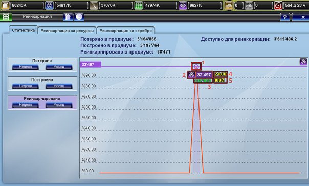 5. О расчете коэффициентов и потенциала к реинкарнации. Некоторое время назад был запущен скрипт, который посчитал размер армий у игроков на момент ноль и начал считать значения потерь в продиуме и постройки также в продиуме. У новых игроков эти параметры уже стали считаться с момента создания соты.