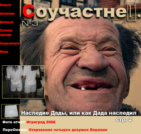 Пока шел набор к Главреду подошли какие-то странные люди в штатском, после 5 минутного разговора раздался грозный окрик секретарше - Почему не пиарится издание любимого нами Эридана ? Отчего интервью нашего соратника Кодеша не нашло место на обложке нашего ежегодника к дню  "пророков всея отечества" ? Как посмели, Вы - попусту жующие орбит, который вам дала свобода, замолчать правду ? Было еще много хулительных слов, все забегали и срочно нашли старые линки к нетленкам (жамкать на картинки) :